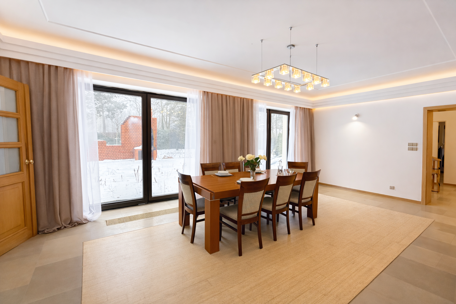 - jadalnia z dwoma wyjściami na taras